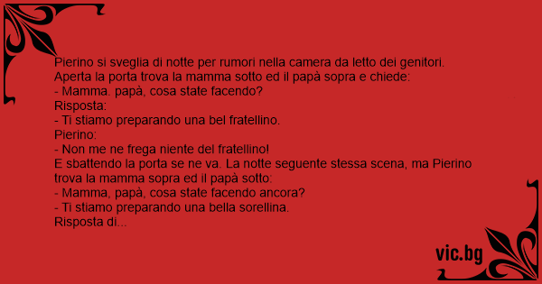 La notte seguente Pierino, entrando di nuovo nella camera, trova la mamma davanti ed il padre dietro ed esclama inсаzzато:
