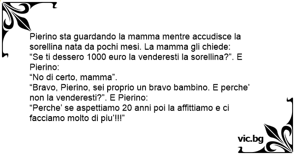 “Bravo, Pierino, sei proprio un bravo bambino. E perche’ non la venderesti?”. E Pierino: