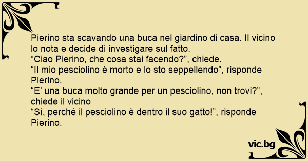 “Il mio pesciolino è morto e lo sto seppellendo”, risponde Pierino.