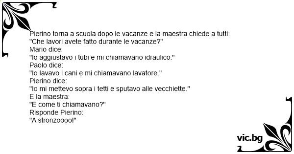 Pierino torna a scuola dopo le vacanze e la maestra chiede a tutti: