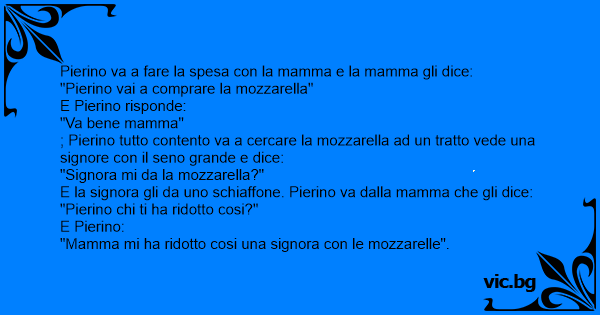 ; Pierino tutto contento va a cercare la mozzarella ad un tratto vede una signore соn il seno grande e dice: