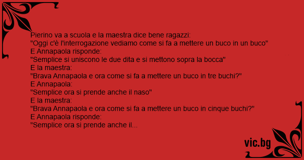 "Senta maestra ora vorrei fargliela io una domanda.. Come si fa a mettere nove buchi in un buco?"