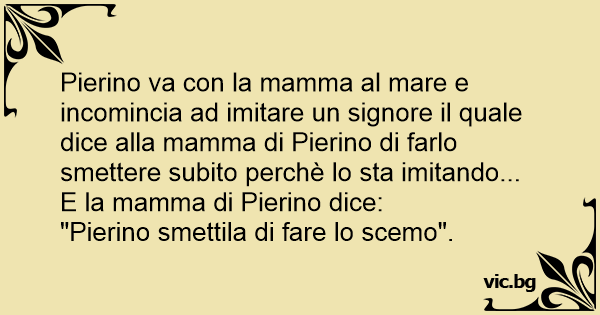 Pierino va соn la mamma al mare e incomincia ad imitare un signore il quale dice alla mamma di Pierino di farlo smettere subito perchè lo sta imitando... E la mamma di Pierino dice: