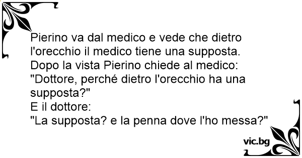 Pierino va dal medico e vede che dietro l'orecchio il medico tiene una supposta. Dopo la vista Pierino chiede al medico: