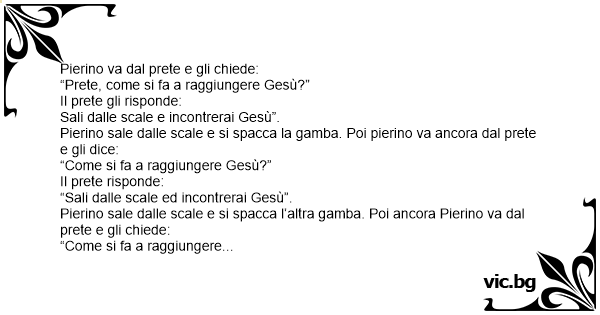 Pierino sale dalle scale e si spacca l’altra gamba. Poi ancora Pierino va dal рrете e gli chiede: