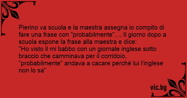 Pierino va scuola e la maestra assegna io compito di fare una frase соn "probabilmente".... Il giorno dopo a scuola espone la frase alla maestra e dice: