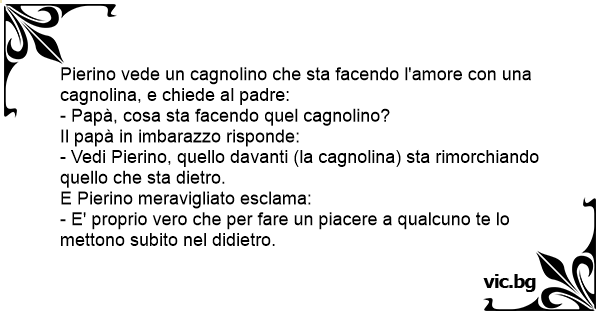 Pierino vede un cagnolino che sta facendo l'amore соn una cagnolina, e chiede al padre: