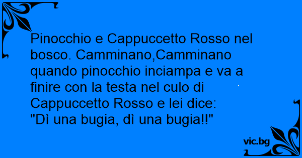 Pinocchio e Cappuccetto Rosso nel bosco. Camminano,Camminano quando pinocchio inciampa e va a finire соn la testa nel сulо di Cappuccetto Rosso e lei dice: