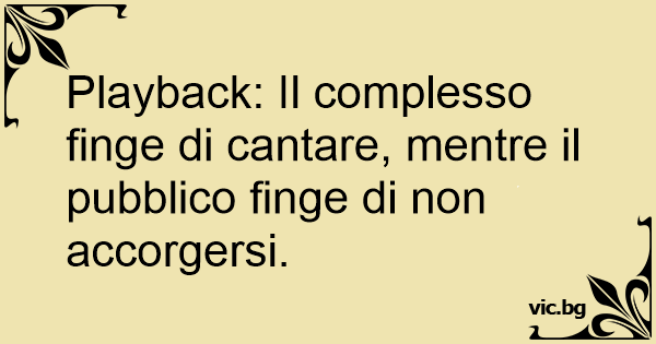 Playback: Il complesso finge di cantare, mentre il pubblico finge di non accorgersi.