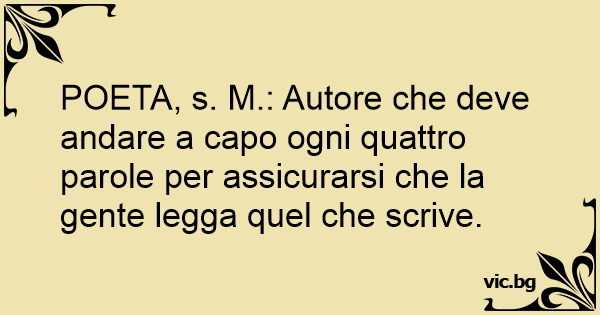 POETA, s. M.: Autore che deve andare a capo ogni quattro parole per assicurarsi che la gente legga quel che scrive.