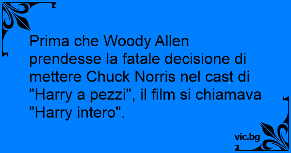 Prima che Wооdy Allen prendesse la fatale decisione di mettere Chuck Norris nel cast di "Harry a pezzi", il film si chiamava "Harry intero".