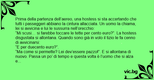 “Mi scusi… si farebbe toccare le тетте per cento euro?”. La hostess disgustata si allontana. Quando sono già in volo il tizio le fa cenno di avvicinarsi: