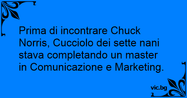 Prima di incontrare Chuck Norris, Cucciolo dei sette nani stava completando un master in Comunicazione e Marketing.