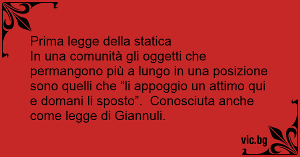 In una comunità gli oggetti che permangono più a lungo in una posizione sono quelli che “li appoggio un attimo qui e domani li sposto”. Conosciuta anche come legge di Giannuli.