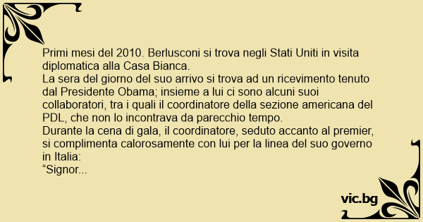 Primi mesi del 2010. Berlusconi si trova negli Stati Uniti in visita diplomatica alla Casa Bianca.