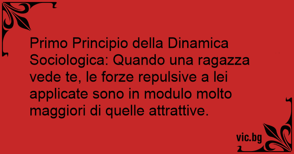 Primo Principio della Dinamica Sociologica: Quando una ragazza vede te, le forze repulsive a lei applicate sono in modulo molto maggiori di quelle attrattive.