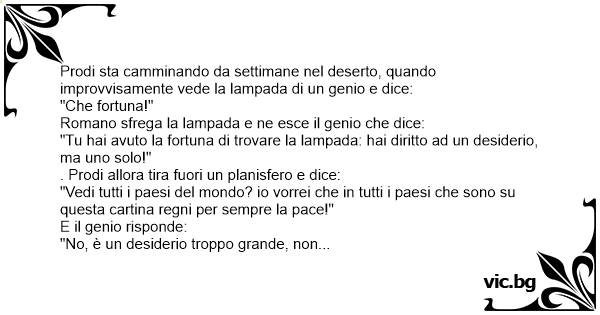"Tu hai avuto la fortuna di trovare la lampada: hai diritto ad un desiderio, ma uno solo!"
