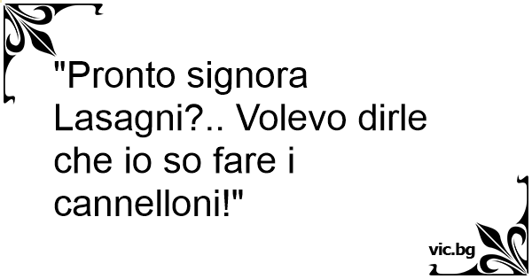 "Pronto signora Lasagni?.. Volevo dirle che io so fare i cannelloni!"