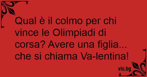 Qual è il colmo per chi vince le Olimpiadi di corsa? Avere una figlia... che si chiama Va-lentina!
