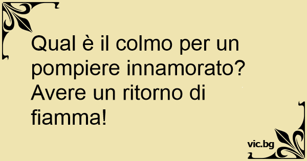 Qual è il colmo per un pompiere innamorato? Avere un ritorno di fiamma!