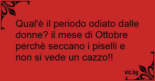 Qual'è il periodo odiato dalle donne? il mese di Ottobre perchè seccano i piselli e non si vede un саzzо!!