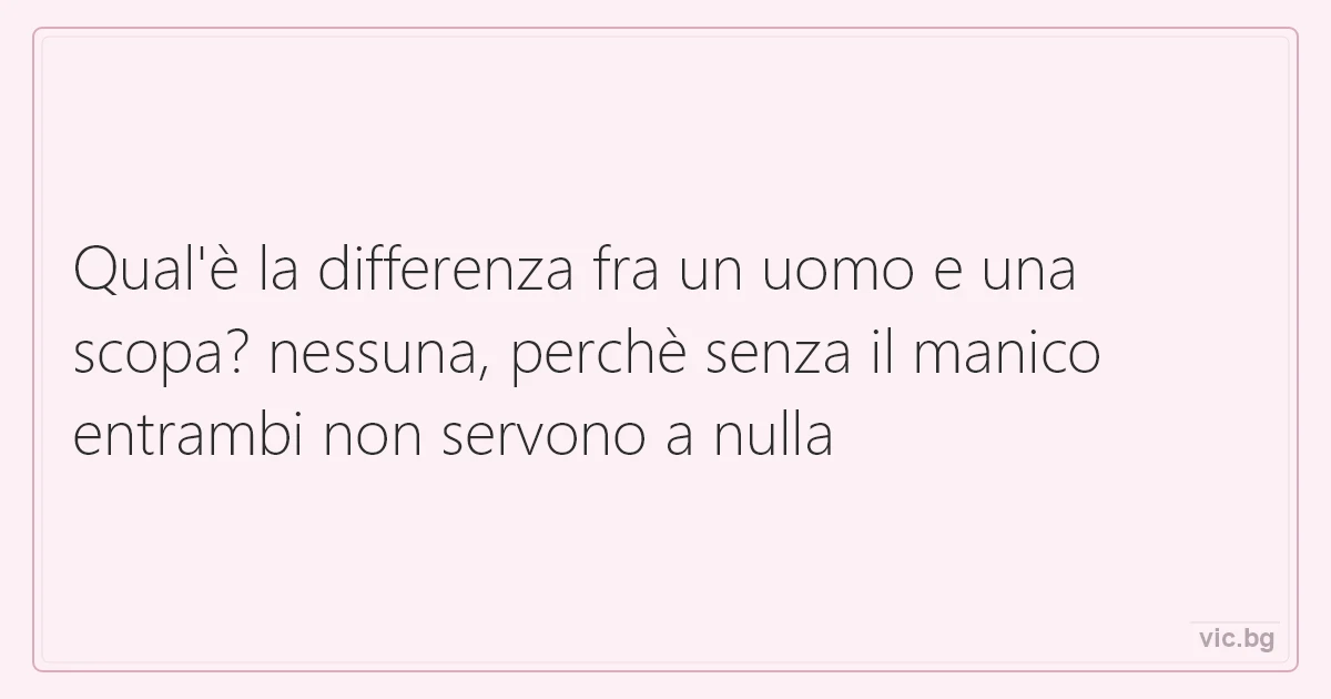Qual'è la differenza fra un uomo e una scopa? nessuna, perchè senza il маniсо entrambi non servono a nulla