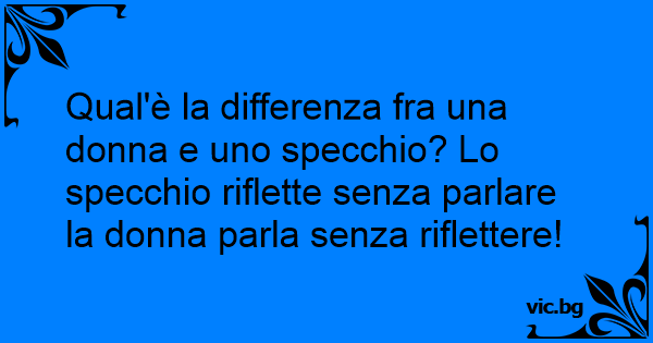 Qual'è la differenza fra una donna e uno specchio? Lo specchio riflette senza parlare la donna parla senza riflettere!