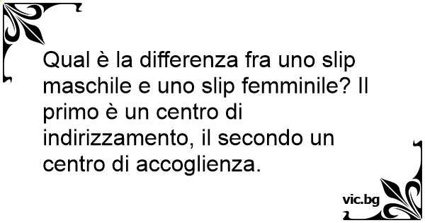 Qual è la differenza fra uno slip maschile e uno slip femminile? Il primo è un centro di indirizzamento, il secondo un centro di accoglienza.