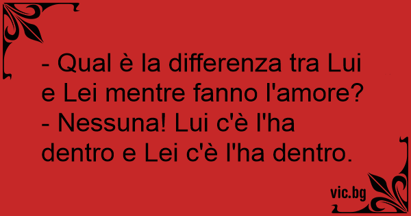 - Nessuna! Lui c'è l'ha dentro e Lei c'è l'ha dentro.