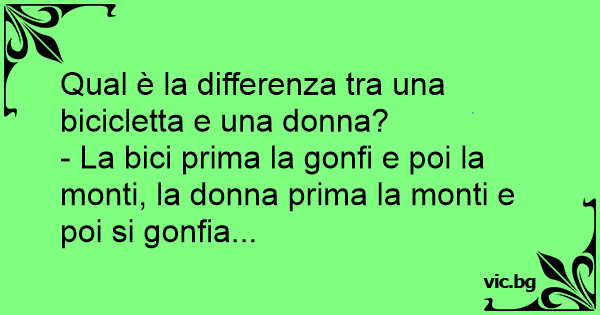 - La bici prima la gonfi e poi la monti, la donna prima la monti e poi si gonfia...