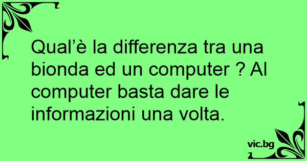 Qual’è la differenza tra una bionda ed un computer ? Al computer basta dare le informazioni una volta.