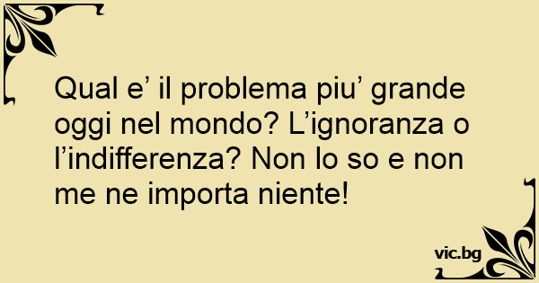 Qual e’ il problema piu’ grande oggi nel mondo? L’ignoranza o l’indifferenza? Non lo so e non me ne importa niente!