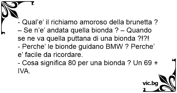 - Qual’e’ il richiamo amoroso della brunetta ? – Se n’e’ andata quella bionda ? – Quando se ne va quella рuттаnа di una bionda ?!?!