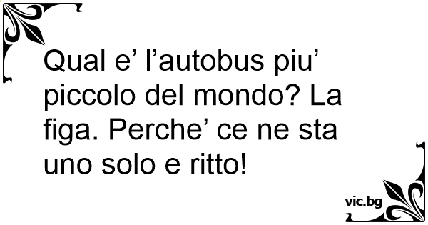 Qual e’ l’autobus piu’ piccolo del mondo? La figа. Perche’ ce ne sta uno solo e ritto!