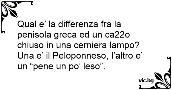Qual e’ la differenza fra la penisola greca ed un ca22o chiuso in una cerniera lampo? Una e’ il Peloponneso, l’altro e’ un “pene un po’ leso”.