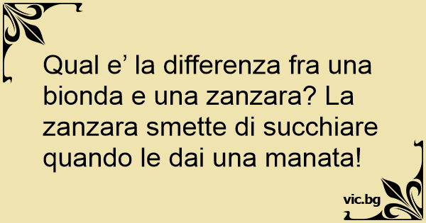 Qual e’ la differenza fra una bionda e una zanzara? La zanzara smette di succhiare quando le dai una manata!