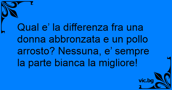 Qual e’ la differenza fra una donna abbronzata e un pollo arrosto? Nessuna, e’ sempre la parte bianca la migliore!