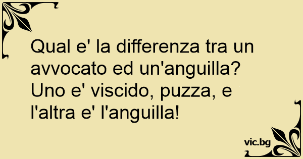Qual e' la differenza tra un avvocato ed un'anguilla? Uno e' viscido, puzza, e l'altra e' l'anguilla!