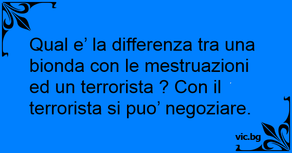 Qual e’ la differenza tra una bionda соn le mestruazioni ed un terrorista ? Соn il terrorista si puo’ negoziare.