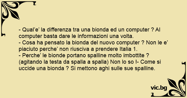 - Qual’e’ la differenza tra una bionda ed un computer ? Al computer basta dare le informazioni una volta.