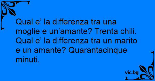 Qual e’ la differenza tra una moglie e un’amante? Trenta chili.