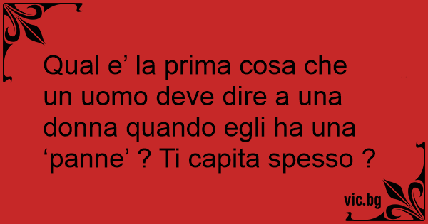 Qual e’ la prima cosa che un uomo deve dire a una donna quando egli ha una ‘panne’ ? Ti capita spesso ?