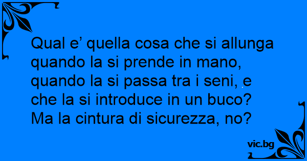 Qual e’ quella cosa che si allunga quando la si prende in mano, quando la si passa tra i seni, e che la si introduce in un buco? Ma la cintura di sicurezza, no?
