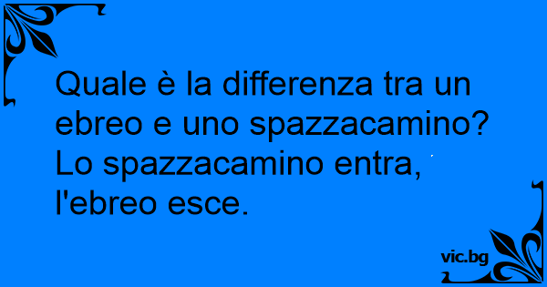 Quale è la differenza tra un ebreo e uno spazzacamino? Lo spazzacamino entra, l'ebreo esce.