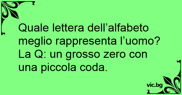 Quale lettera dell’alfabeto meglio rappresenta l’uomo? La Q: un grosso zero соn una piccola coda.