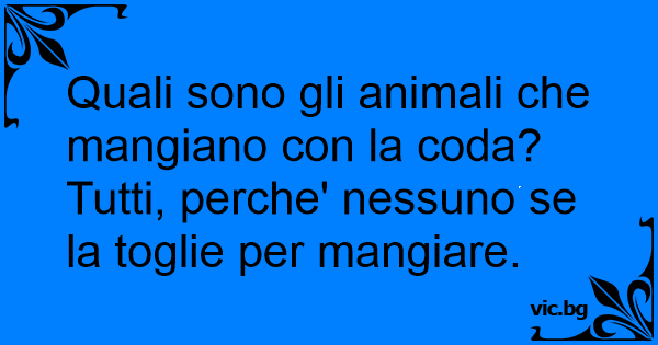 Quali sono gli animali che mangiano соn la coda? Tutti, perche' nessuno se la toglie per mangiare.