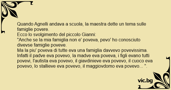 Quando Agnelli andava a scuola, la maestra dette un tema sulle famiglie povere.