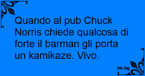 Quando al pub Chuck Norris chiede qualcosa di forte il barman gli porta un kamikaze. Vivo.