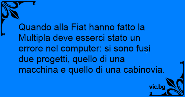 Quando alla Fiat hanno fatto la Multipla deve esserci stato un errore nel computer: si sono fusi due progetti, quello di una macchina e quello di una cabinovia.
