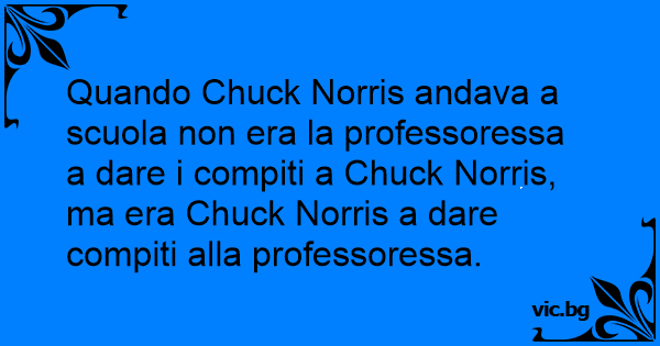 Quando Chuck Norris andava a scuola non era la professoressa a dare i compiti a Chuck Norris, ma era Chuck Norris a dare compiti alla professoressa.